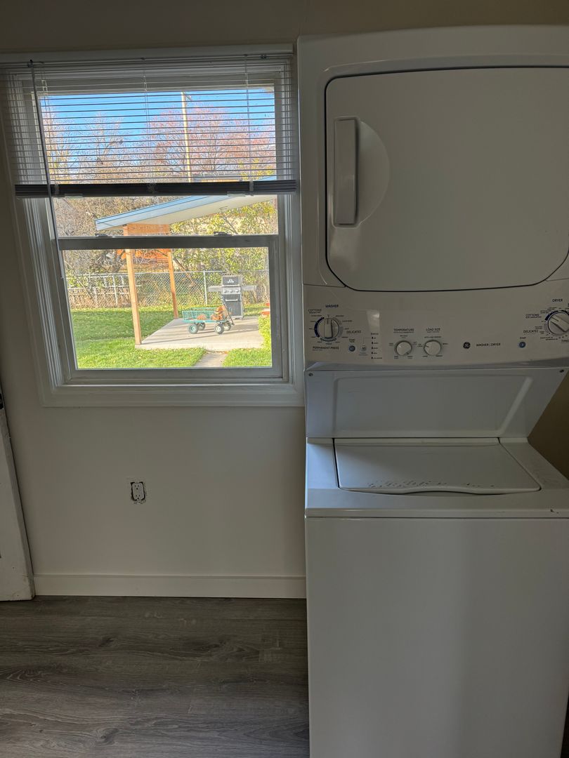 $1200 and $1100 security deposit. One year lease. Rent includes water, trash and lawn care. Tenant covers electricity, gas and snow removal. Includes washer and dryer.