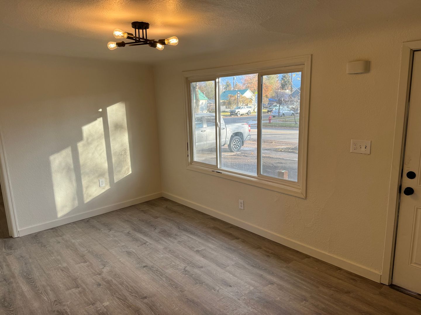 Beautifully remodeled one bedroom, one bath apartment. Includes private laundry and one off street parking spot. Convenient location on 5th Ave West. All new paint, floors, blinds, countertops, sink, light fixtures, new tub surround, and vanity. Currently finishing the remodel on the kitchen and bathroom.